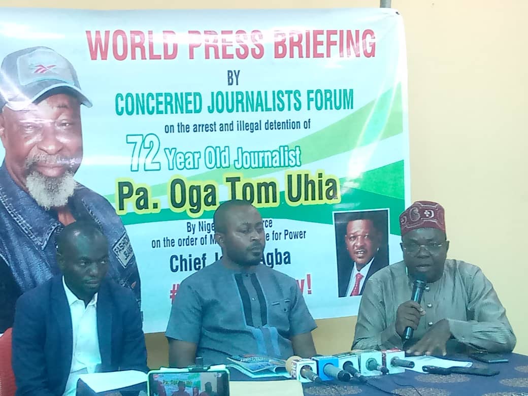 Nigerian Journalists, under the auspices of Concerned Journalists Forum, have cried to President Muhammad Buhari, to intervene and set free, a 72-year old Oga Tom Uhia from the Police detention.